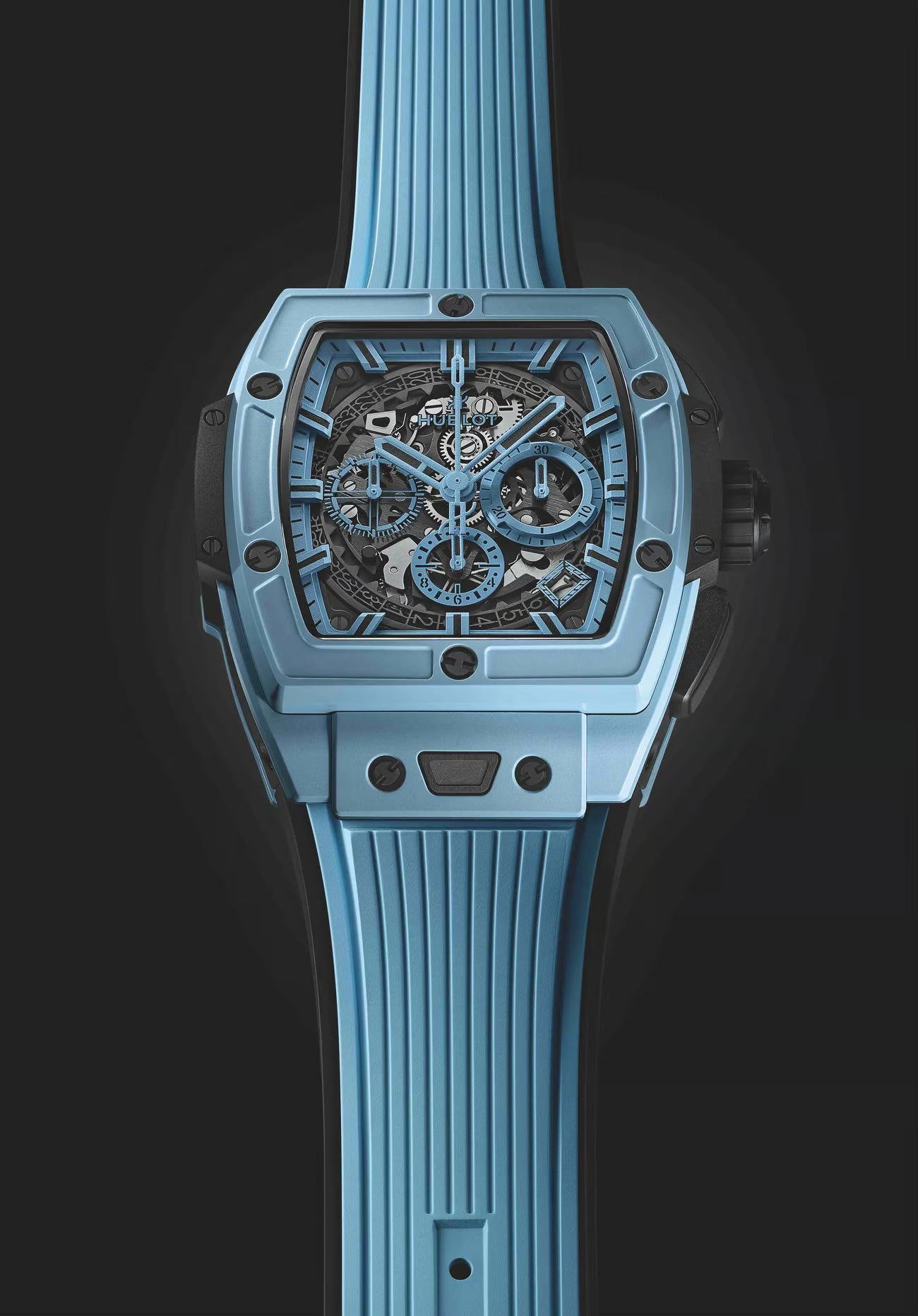![]() The Hublot Spirit Of Big Bang Sky Blue Ceramic 42mm features a 42mm case size that has been Microblasted and Polished. The bezel is also Microblasted and Polished, and made of sky blue ceramic. It has a water resistance of 100m or 10 ATM. The crystal is made of Sapphire with Anti-reflective Treatment and the dial is Sapphire Crystal. The movement is powered by the HUB4700 Self-winding Skeleton Chronograph Movement and has a power reserve of 50 Hours. Black and light blue lined structured rubber strap. DISCOVER |