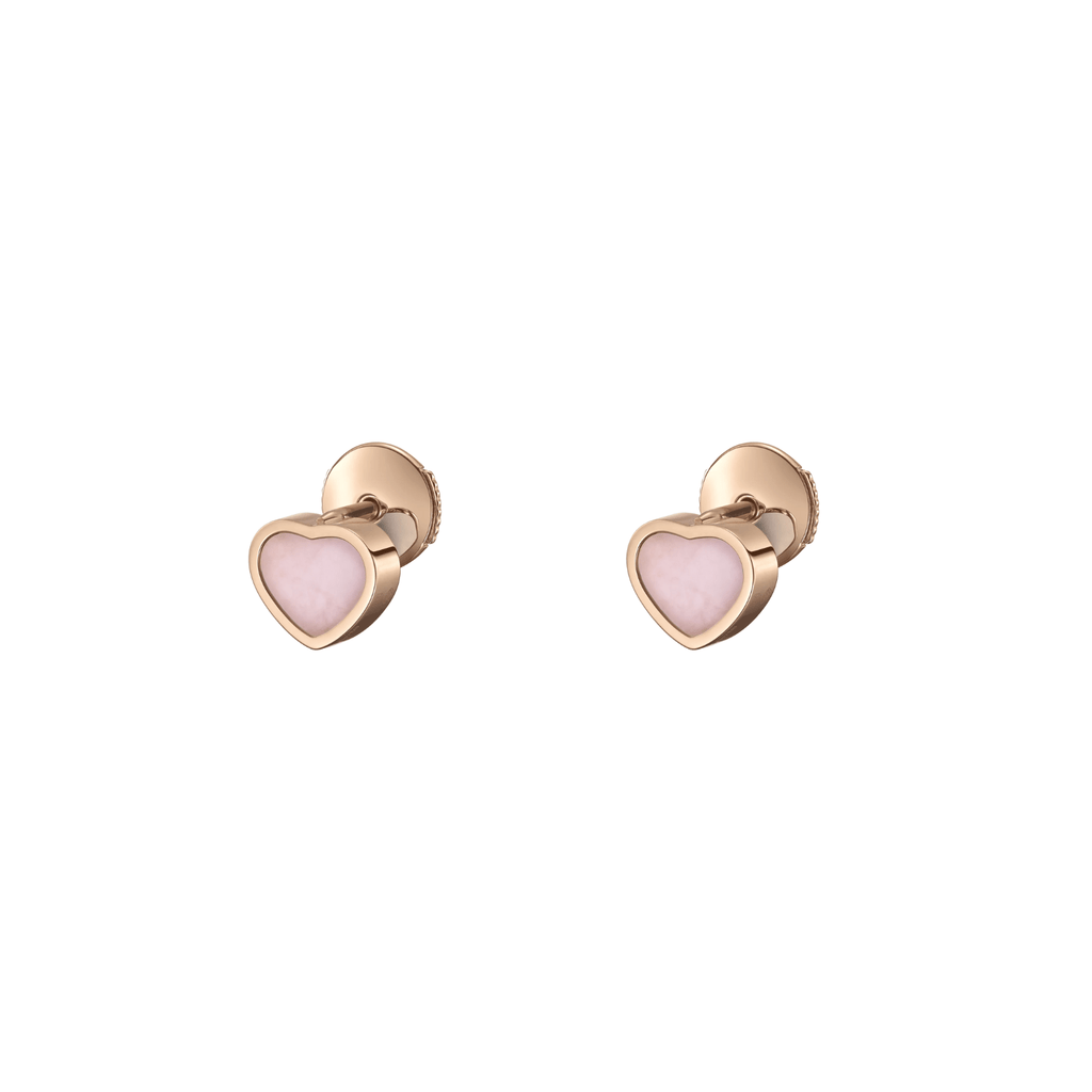 Chopard My Happy Hearts Earrings in 18 karat rose gold with pink opal. Sold as a pair.