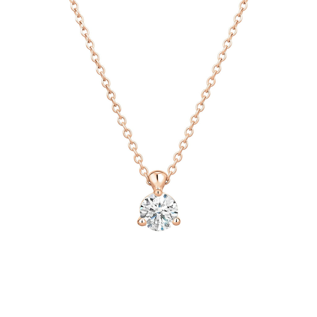 A classic Hearts On Fire design, our three-prong pendant displays one round perfectly cut diamond on a stunningly simple setting for optimal sparkle and beauty. Hearts On Fire Classic 3 Prong Solitaire Necklace in 18 karat rose gold.