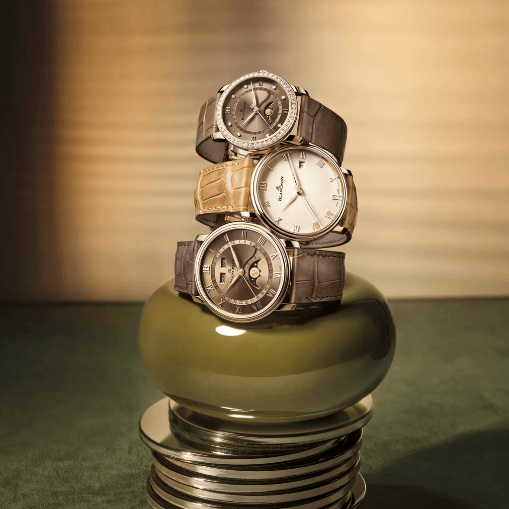 This timepiece features a 40mm rose gold paired with a brown dial. It is powered by an automatic movement with a 100-hour power reserve. Functions include date display, complemented by an alligator leather strap.