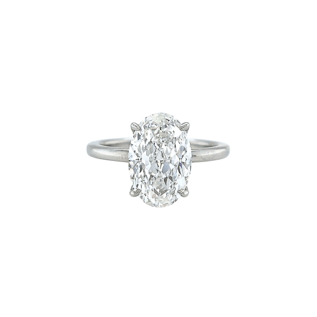 | Center Stone | Oval-cut diamond, 3.07 carats, E VS 2 |