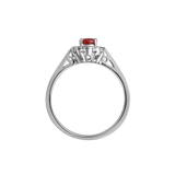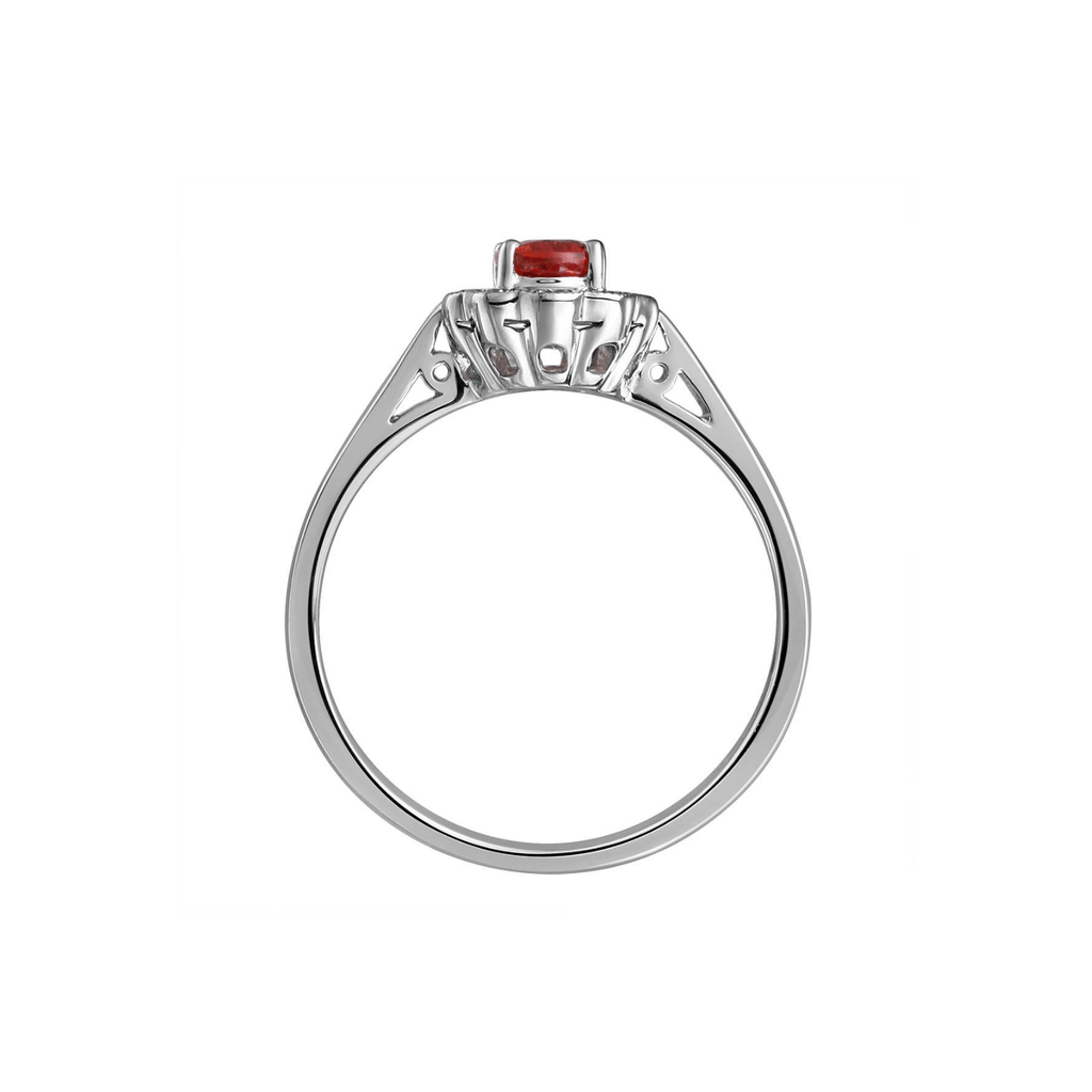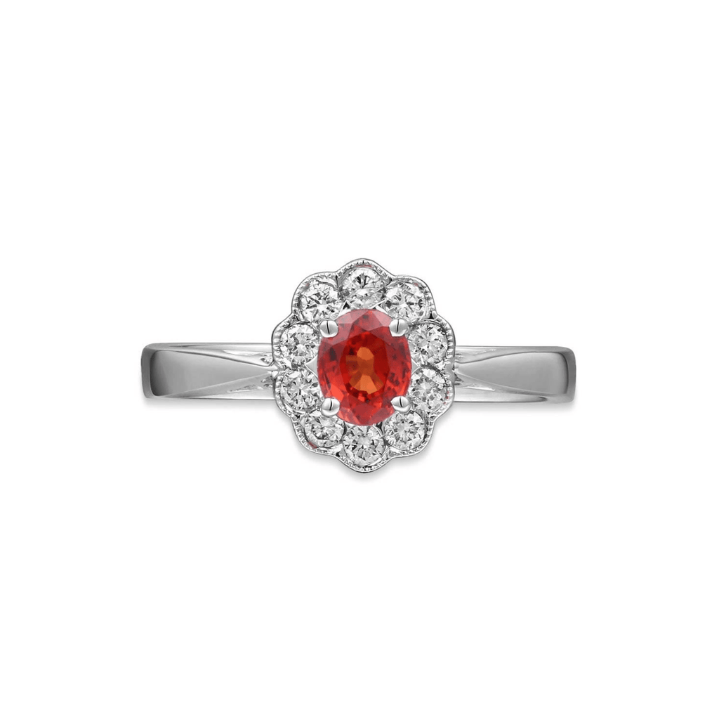 Illuminate your style with this captivating ring, featuring a fiery 0.50 carat orange sapphire. This vibrant center stone is beautifully contrasted by a sparkling halo of white diamonds, totaling 0.22 carats. The entire piece is set in polished 18K white gold for a look of modern elegance.