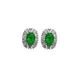 Emerald Diamond Earrings in 18 karat white gold with emeralds totaling 0.75 carats and diamonds totaling 0.56 carats.