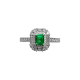 Emerald Diamond Ring in 18 karat white gold with emerald totaling 0.55 carats and diamonds totaling 0.45 carats.