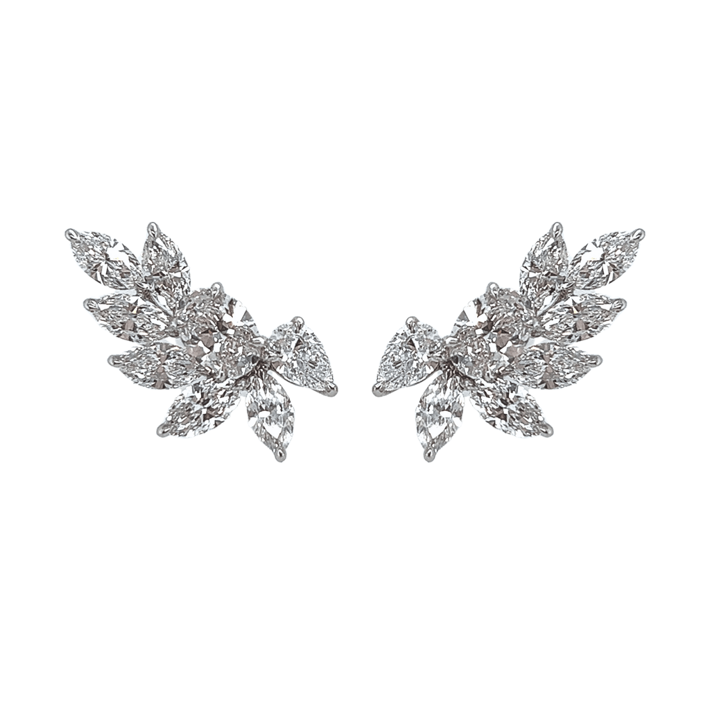 Platinum ophelia diamond earrings. Diamonds totaling 7.83 carats.