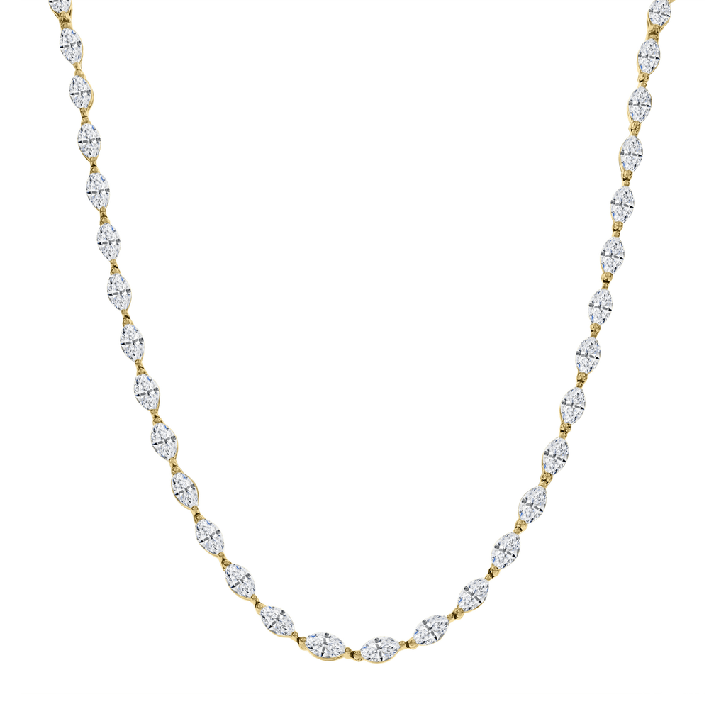 This necklace is crafted in 18 karat yellow gold with marquise diamonds totaling 14.50 carats.