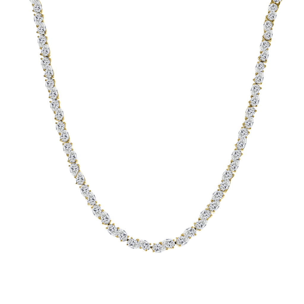 This necklace is crafted in 18 karat yellow gold with pear-cut diamonds totaling 23.75 carats.