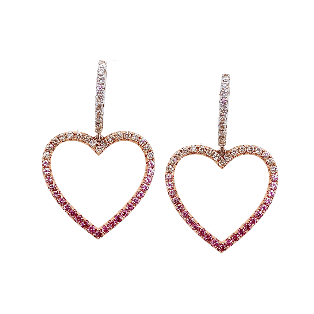 Made with 18 karat white and rose gold Heart-shaped Pink Sapphire Diamond Earrings. Pink sapphire totaling 0.71 carat weight. Diamonds totaling 0.63 carat weight.