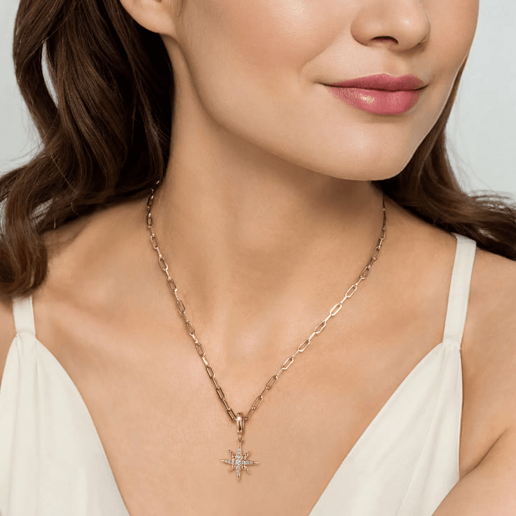This Gabriel & Co. star charm is crafted in 14K yellow gold and features diamonds with a combined weight of 0.15 carats.