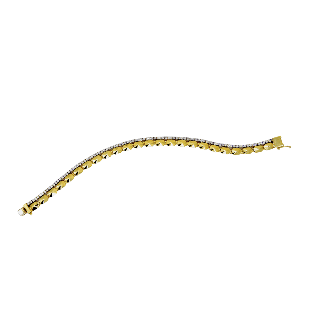 Measuring 7 inches in length, this double bracelet is made of 18k yellow gold and adorned with diamonds totaling 1.76 carats, making it a sophisticated and timeless piece for any jewelry collection.