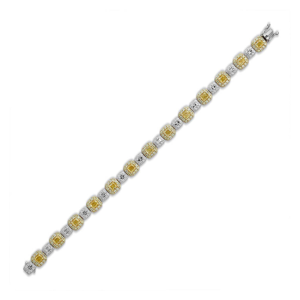 Bracelet made in 18 karat white and yellow gold with yellow and white diamonds totaling 8.57 carats. The bracelet measures 7 inches.