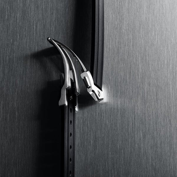 Black aluminium is also used to create the dial, which is laser-engraved with the Diver’s iconic wave pattern. The skeletonized hands and indexes are rhodium plated and filled with white Super-LumiNova, while the other markings, including the OMEGA logo, are transferred in white.