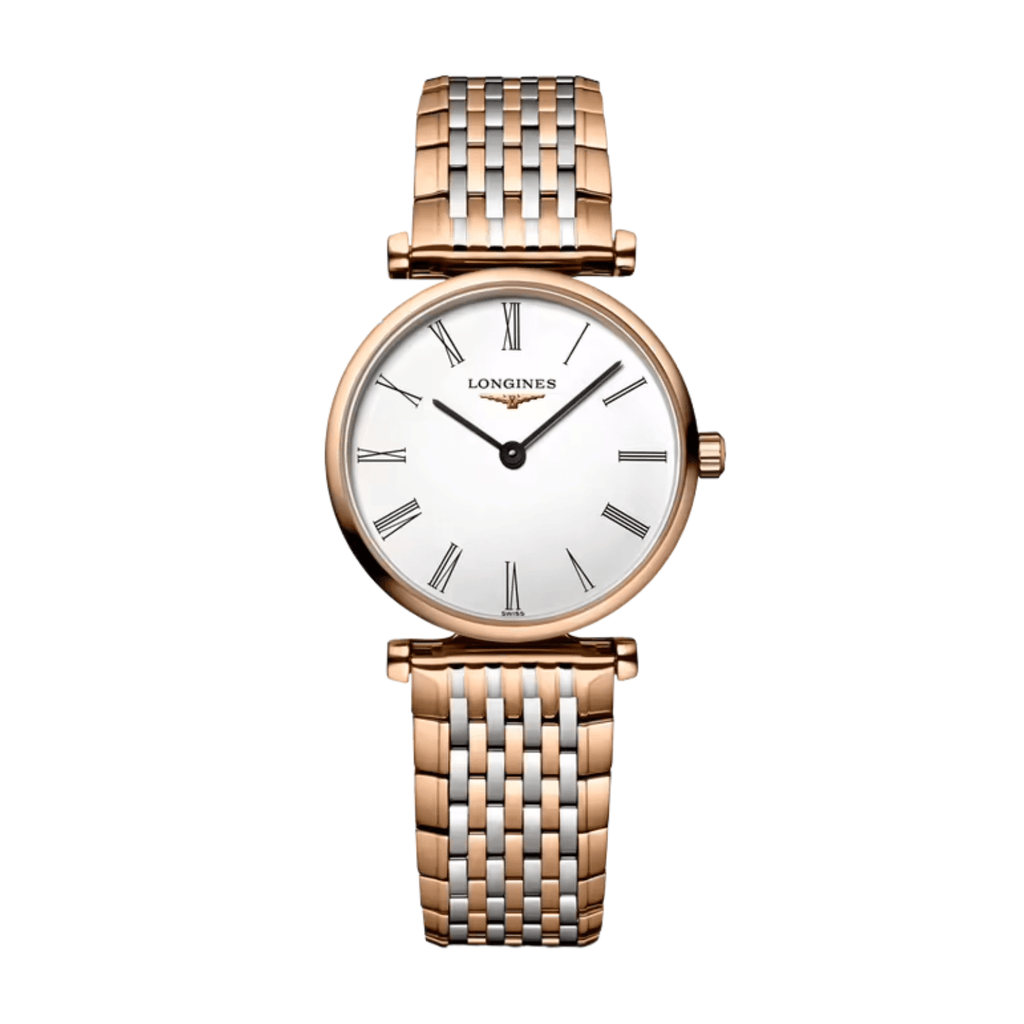 Quartz watch, Ø 24.00 mm, Stainless steel and red PVD coating. Water-resistant to 3 bar, Scratch-resistant sapphire crystal. White dial. Stainless Steel and red PVD coating bracelet, With triple safety folding clasp and push-piece opening mechanism.