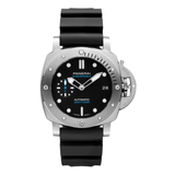 42mm stainless steel case, black dial with small seconds and date display. Water resistance of 300m. Automatic movement, power reserve of 3 days. Black rubber strap