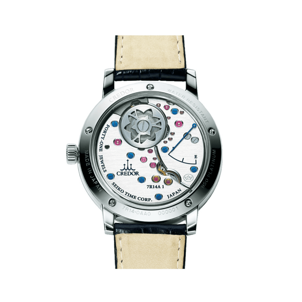 This exceptional timepiece features a 39mm Platinum 950 case and is powered by a manual winding Spring Drive movement with a 60-hour power reserve. It offers splash resistance and showcases a refined white dial. The open caseback provides a view of the intricate mechanics, while the alligator strap completes its sophisticated design.