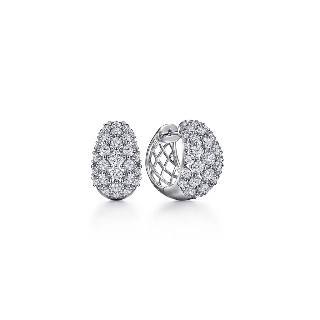 Made with 18 karat white gold 15mm diamond huggies. Diamonds totaling 2.15 carats.
