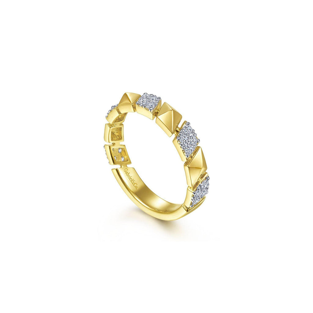 14 karat yellow gold Alternating Pavé Diamond and Pyramid Ring