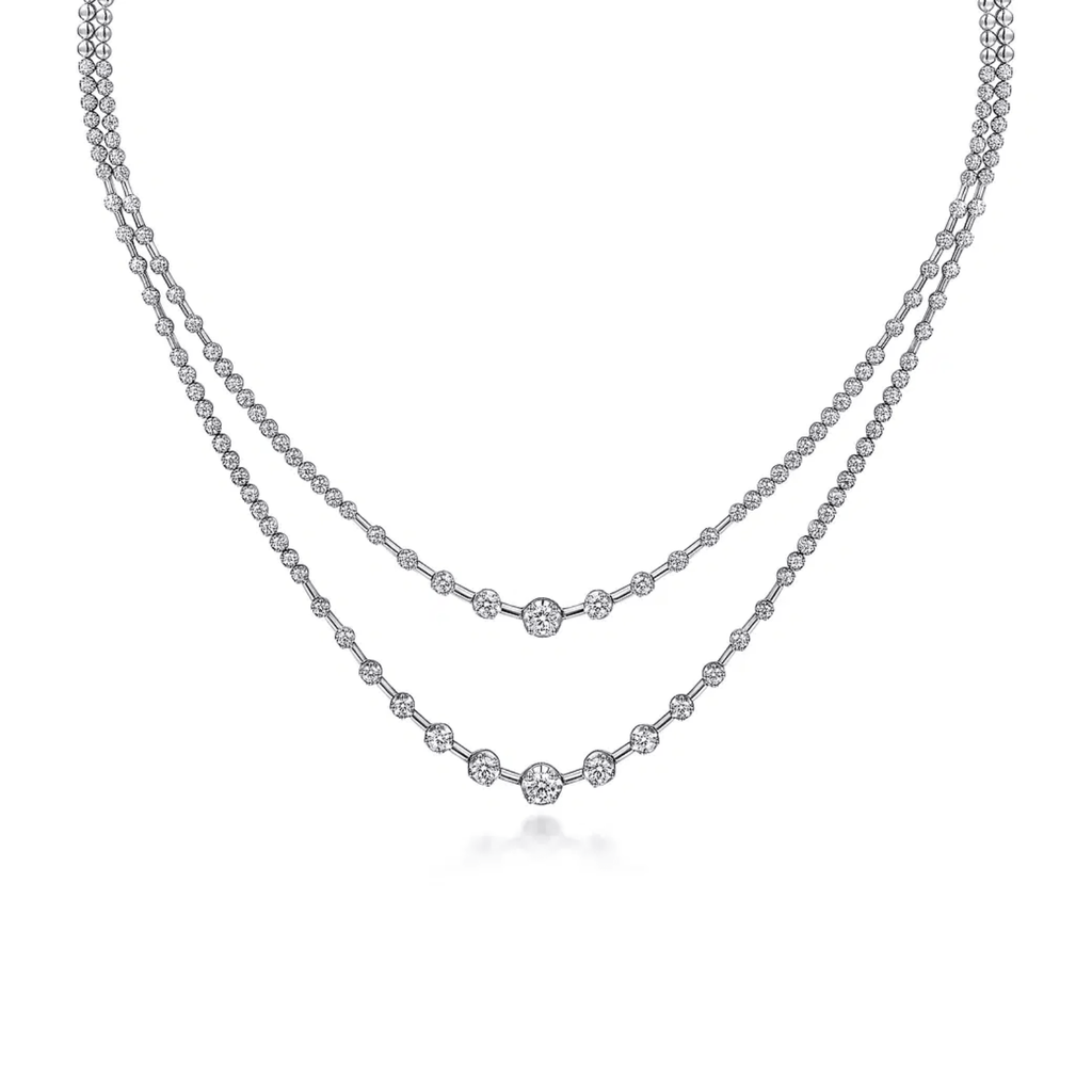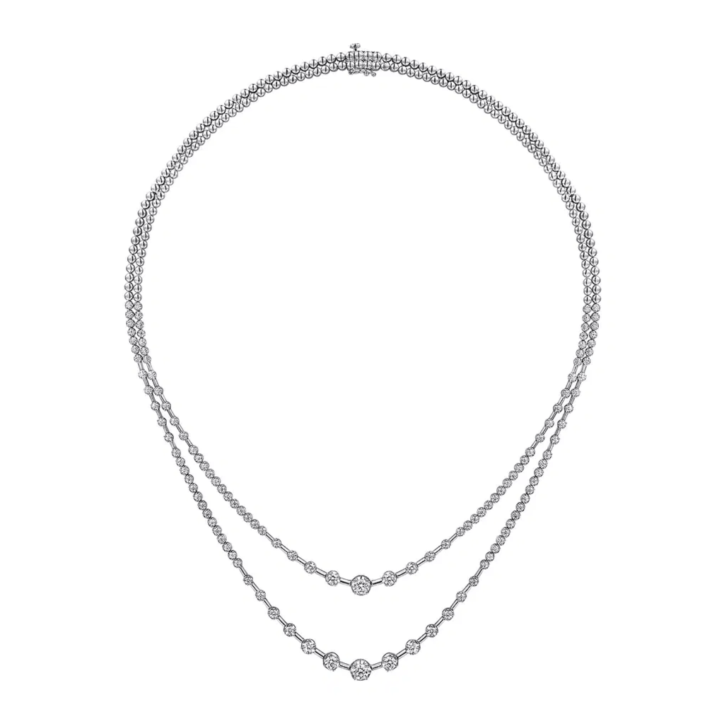 Made with 18 karat white gold diamond necklace. Diamonds totaling 3.95 carats.