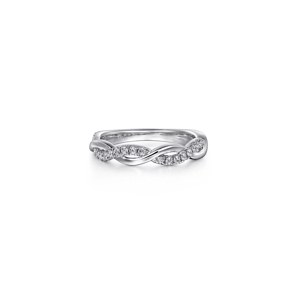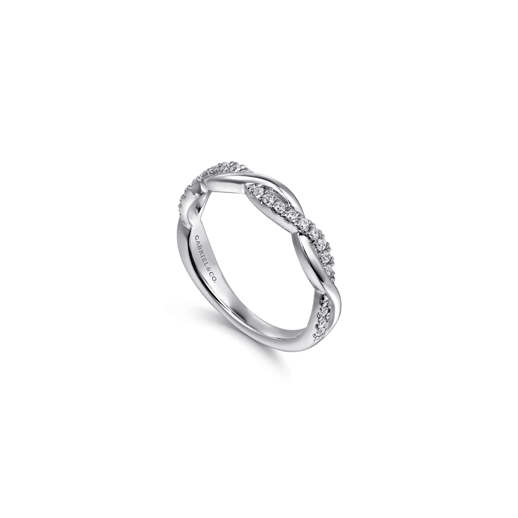 This Gabriel & Co. wedding band features 0.18 carats of diamonds set in 14K white gold, offering a sophisticated and enduring design.