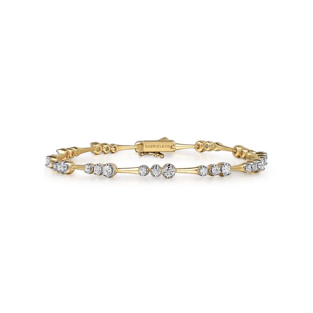 Gabriel & Co. Bujukan Diamond Bracelet featuring a total diamond weight of 0.74 carats, crafted in 14K yellow gold.