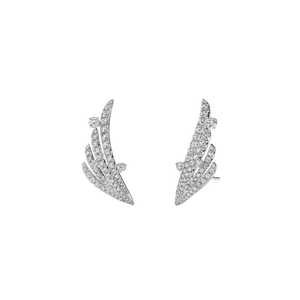 Hearts On Fire Vela French Cut Pavé Floating Diamond Climber Earrings in 18 karat white gold with diamonds totaling 2.25 carats.