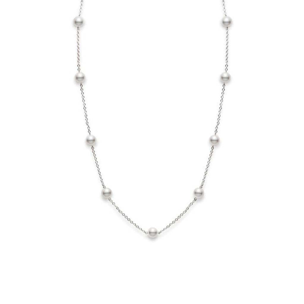 Mikimoto Akoya Cultured Pearl Station Necklace in 18K White Gold