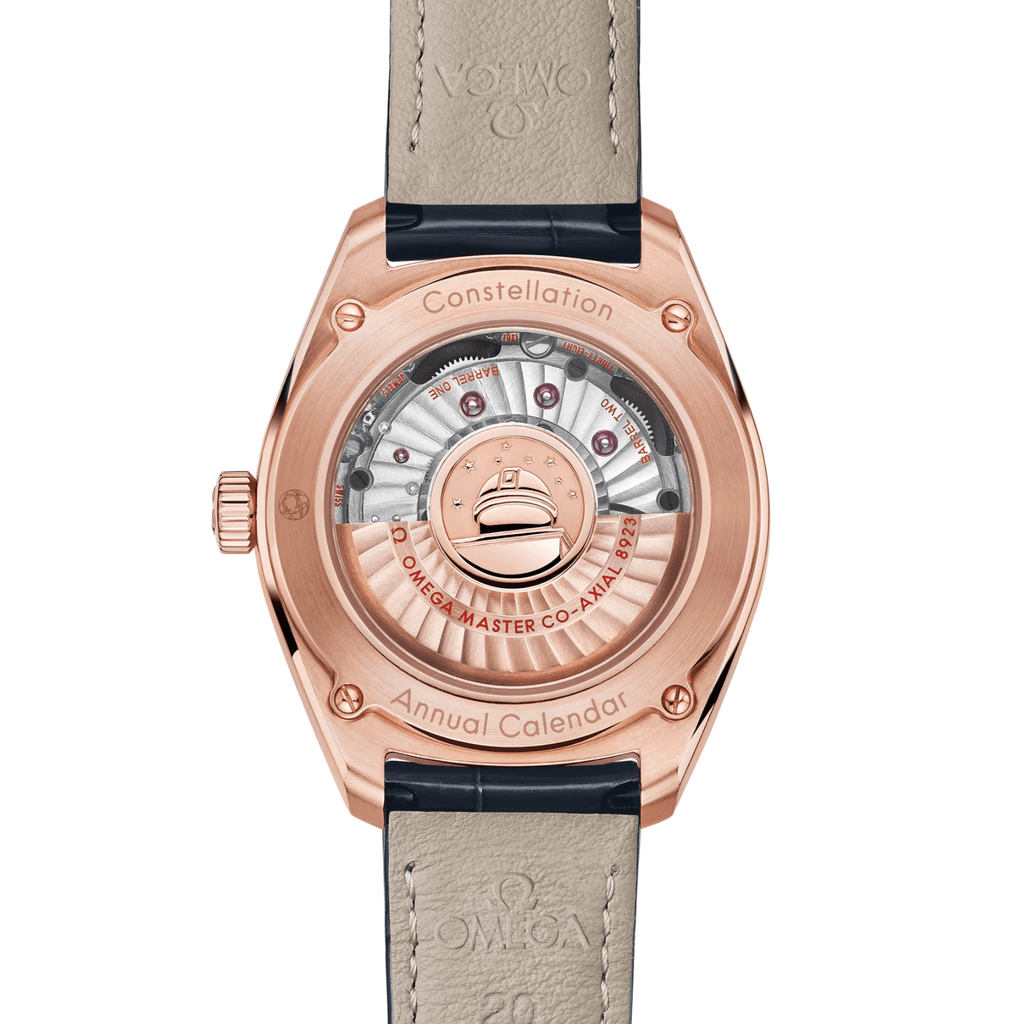 The legendary Globemaster of the OMEGA family has recently been updated to become the very first Master Chronometer in the world, solidifying its status as a renowned watchmaking leader. In this 41.00 mm model, the 18K Sedna™ gold case showcases a polished fluted bezel. The scratch-resistant sapphire crystal caseback displays an 18K Sedna™ gold Central Observatory medallion. The sun-brushed blue "Pie Pan" dial pays homage to the original 1952 Constellation model, with each facet displaying a month of the year as part of the Annual Calendar function. A Constellation star and OMEGA logo in 18K Sedna™ gold, along with Super-LumiNova filled 18K Sedna™ gold hands and indexes, complete the look. This watch also boasts a blue leather strap and is powered by OMEGA's Co-Axial Master Chronometer Annual Calendar Calibre 8923, featuring cutting-edge