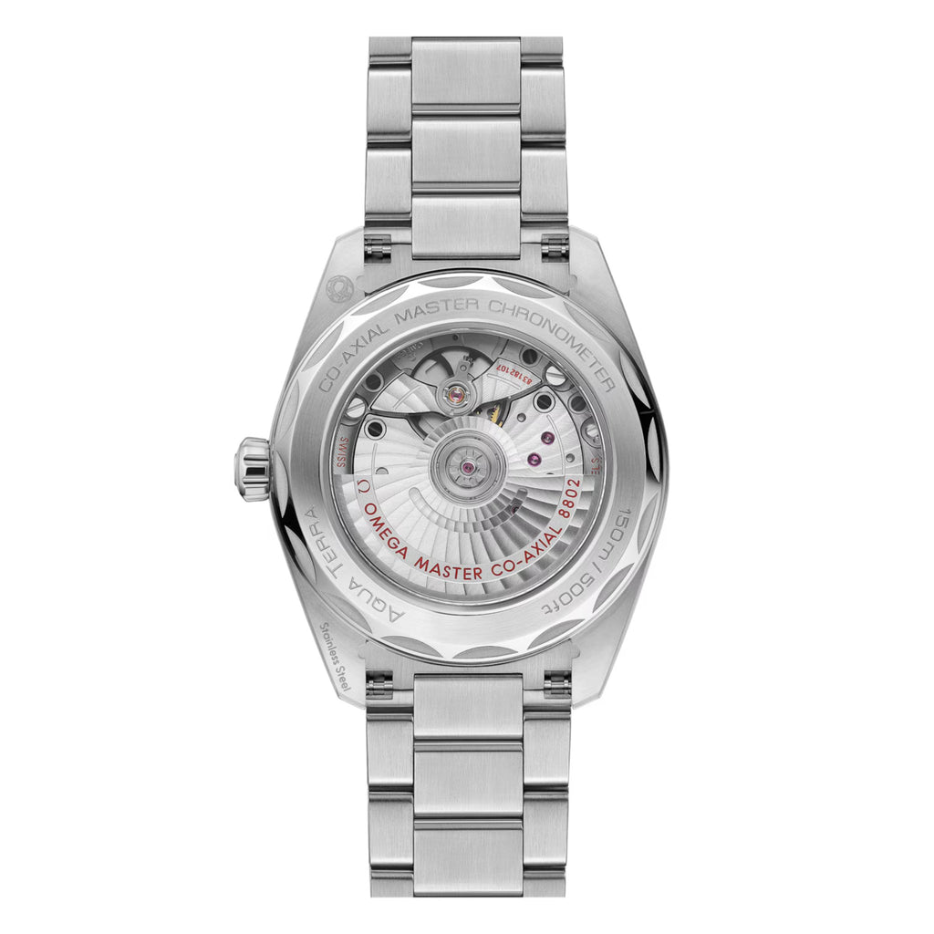 The Seamaster Aqua Terra is a superb tribute to OMEGA’s rich maritime heritage. In this 38 mm model, the symmetrical case has been crafted from stainless steel, with a wave-edged design featured on the caseback. The crystal linen dial is distinguished by a date window at 6H and a Small Seconds subdial featuring an 18K Sedna™ gold ring set with diamonds. The design is further complemented by 18K Sedna™ gold hands filled with white Super-LumiNova, as well as incremental diamond indexes that are set in 18K Sedna™ gold holders. Presented on a polished and brushed bracelet, this timepiece is powered by the OMEGA Co-Axial Master Chronometer calibre 8802, certified at the industry’s highest standard by the Swiss Federal Institute of Metrology (METAS).