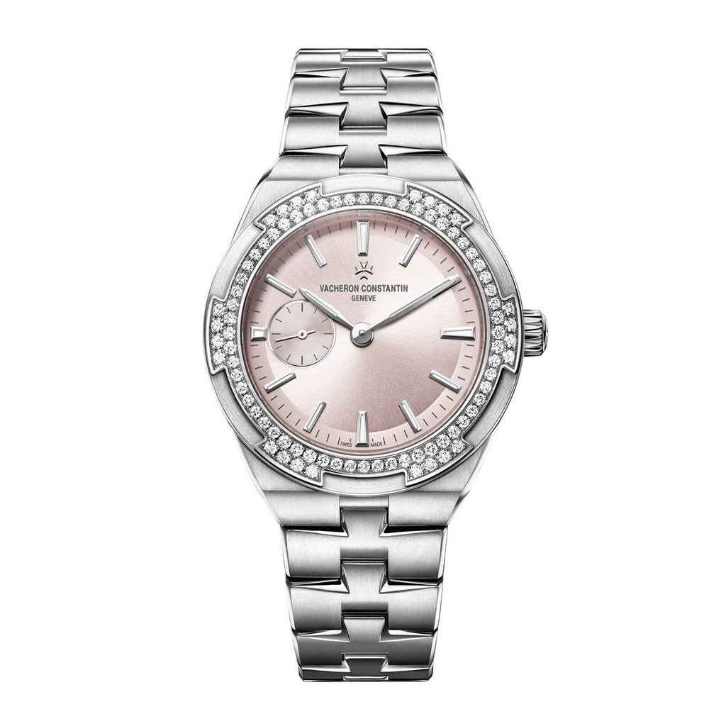 Elegant and relaxed, the bezel of this steel watch is adorned with 84 round-cut diamonds. Its beige-pink dial boasts a small seconds at 9 o'clock. Its openworked caseback reveals an oscillating weight in 22K gold featuring decoration inspired by the wind rose, a tribute to the spirit of travel. Thanks to its clasp and system of three easily interchangeable straps – steel, leather, and rubber – the watch can be personalized according to the owner’s wishes.