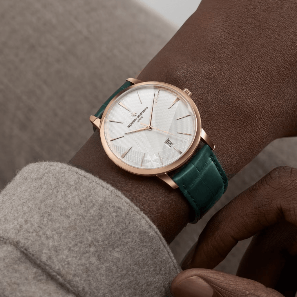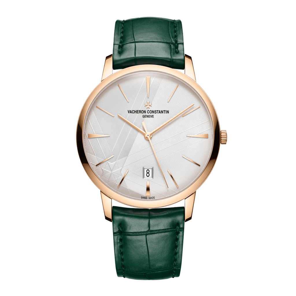 The 40mm rose gold case is complemented by a Silver-toned dial featuring the 270th anniversary pattern inspired by the iconic Maltese cross. The dial also boasts a convex external zone and includes a date window at 6 o'clock. The 18K gold bi-faceted baton-style hour and minute hands, along with the applied hour markers, add a touch of elegance. Additionally, the watch offers a water resistance of 3 bar and is powered by an automatic movement with a 40-hour power reserve. Other features include a date display, hours, balance-stop, central seconds, and minutes, all secured by an alligator strap with ardillon buckle.