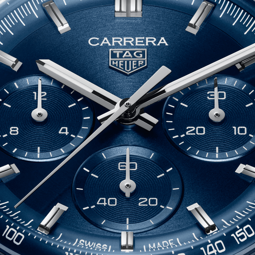 With its captivating blue circular-brushed dial, this 41mm TAG Heuer Carrera Chronograph combines striking presence with refined balance. A tribute to precision and performance, it embodies the spirit of motorsport in a timeless, versatile design powered by the in-house automatic Calibre TH20-01.