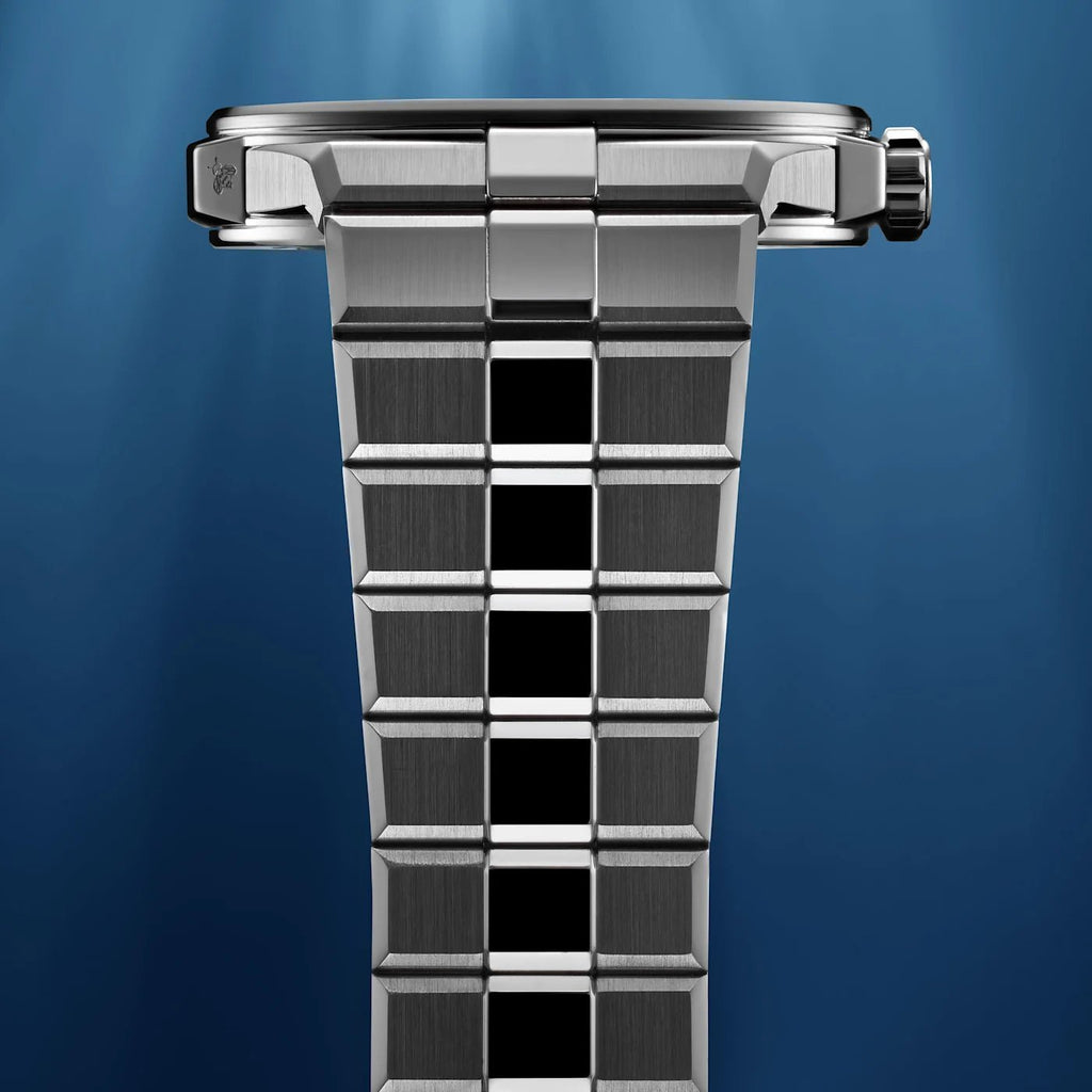 For the first time, Chopard is enriching its Alpine Eagle sports watch collection with an exceptional platinum version featuring the balanced proportions of the ultra-thin ‘41 XP’ case paired with a reshaped bracelet. Crafted in this incomparably pure metal, the new model becomes the precious setting for a dial adorned with a ‘Shades of Ice’ blue gradient, inspired by the nuances of Alpine glaciers. This exceptional timepiece offering a central seconds display (as the ‘CS’ in its name indicates) bears the Poinçon de Genève quality hallmark and is powered by the ultra-thin, chronometer-certified L.U.C 96.42-L movement equipped with a platinum micro-rotor. Water-resistant to 100 m, this is a sports watch with a blend of strength and stamina.