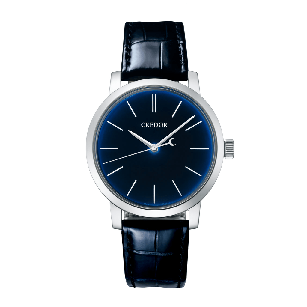 The Credor Eichi II GBLT997 features a 39mm diameter and a 10.3mm thick case crafted from 950 platinum. Its dial showcases a hand-painted blue finish with precise indexes, without lume. The watch offers water resistance up to three bar and is paired with a crocodile leather strap. The Credor Eichi II GBLT997 is powered by the Spring Drive 7R14 caliber, featuring hours, minutes, and seconds functions. It offers a 60-hour power reserve and is manually wound. The movement contains 41 jewels and is chronometer certified with an accuracy of +/- 15 seconds per month.