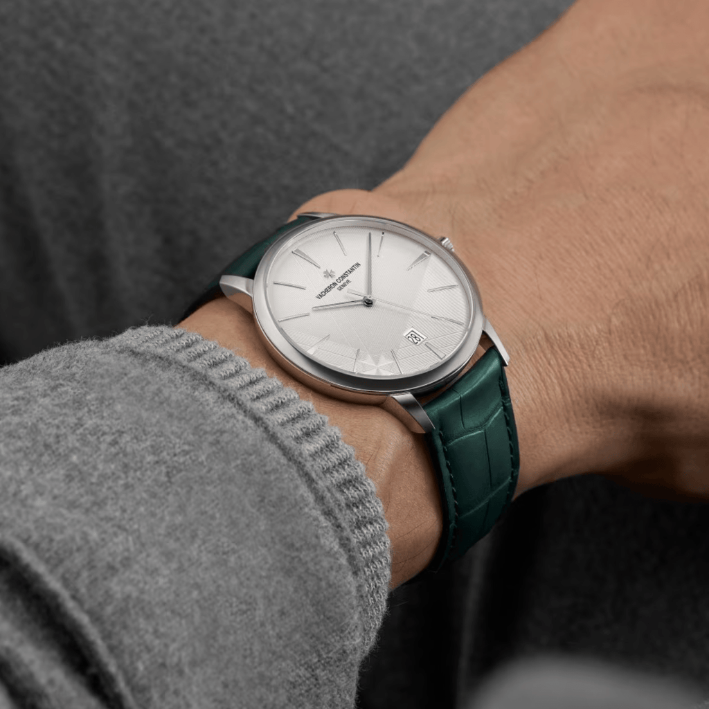 The 40mm white gold case is complemented by a Silver-toned dial featuring the 270th anniversary pattern inspired by the iconic Maltese cross. The dial also boasts a convex external zone and includes a date window at 6 o'clock. The 18K gold bi-faceted baton-style hour and minute hands, along with the applied hour markers, add a touch of elegance. Additionally, the watch offers a water resistance of 3 bar and is powered by an automatic movement with a 40-hour power reserve. Other features include a date display, hours, balance-stop, central seconds, and minutes, all secured by an alligator strap with ardillon buckle.