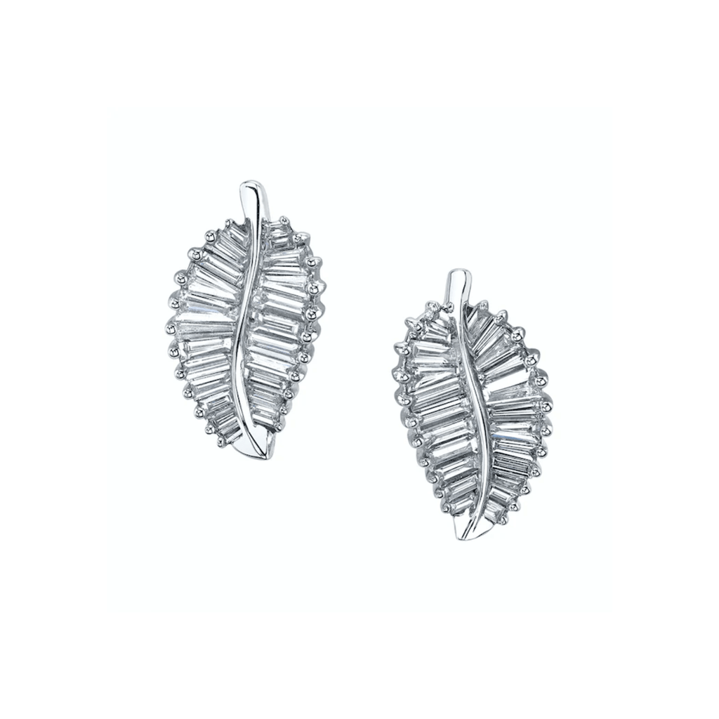 Made with 18 karat white gold classic palm leaf studs. Diamonds totaling 1.61 carat weight.