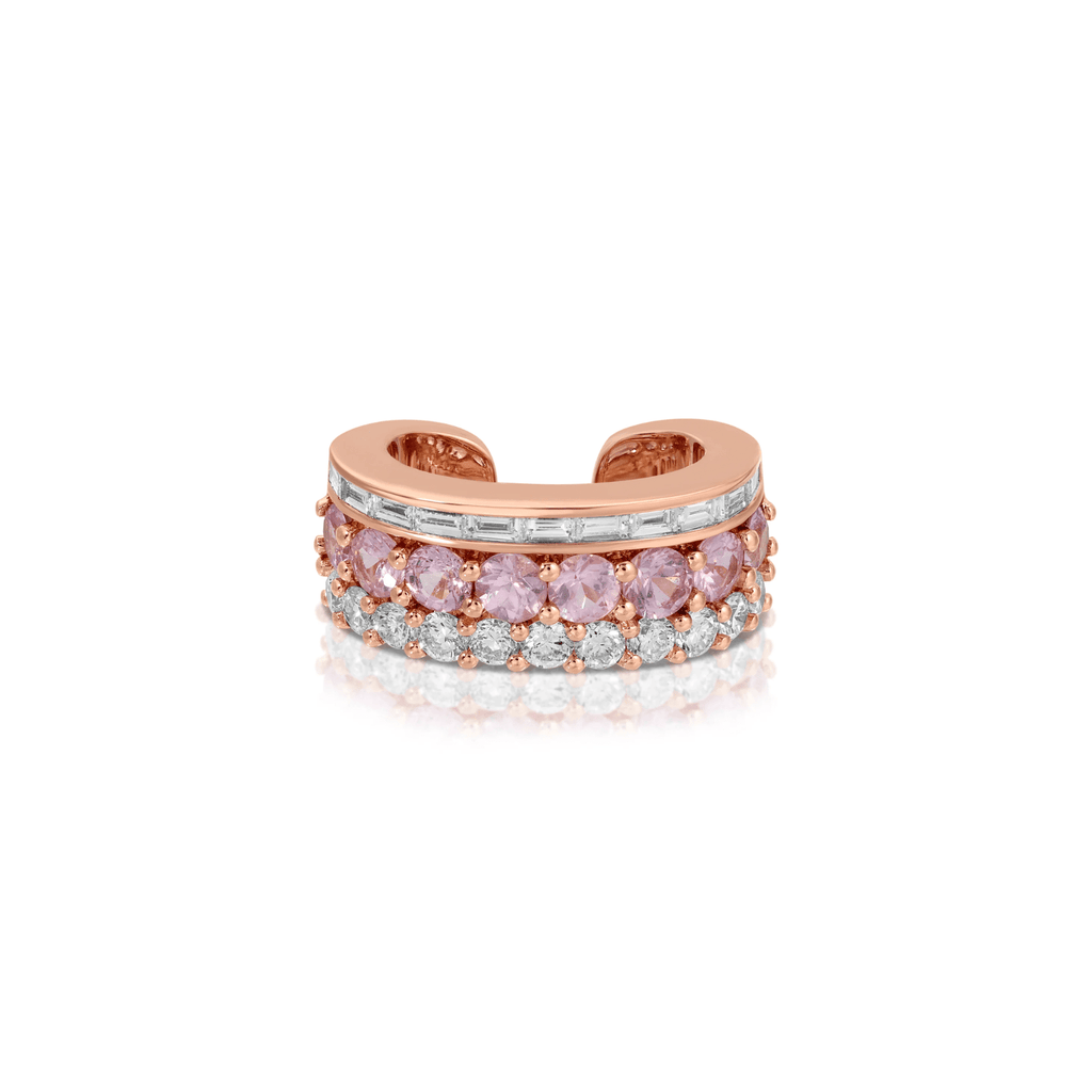 Anita Ko Pink Sapphire Lola Ear Cuff in 18 karat rose gold with pink sapphires totaling 0.88 carats and diamonds totaling 0.56 carats. Note: 1 piece ear cuff.