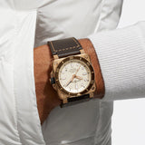 Above all, like all the instrument watches in the BR 03 family from Bell & Ross, the new BR 03-92 DIVER WHITE BRONZE was conceived and designed as a professional quality tool for divers. In order to meet their expectations, it complies with international standard ISO-6425, which states that a "diver’s watch" is a "watch designed to withstand diving in water at depths of at least 100 metres and equipped with a secured measuring system”. Under water, the indices must still be visible at a distance of 25cm in the dark. A diver's watch must also be magnetic-resistant, shock-resistant and, of course, resistant to salt water.
