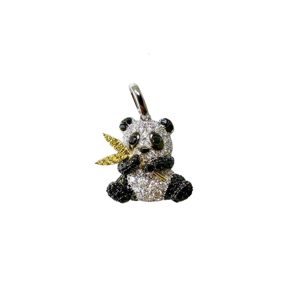 Made with 18 karat yellow and white gold with yellow, black, and white diamonds. Yellow diamonds totaling 0.05 carats, black diamonds totaling 0.66 carats, white diamonds totaling 0.50 carats.