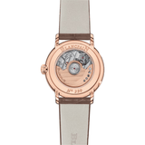 29.2mm Rose Gold case, white dial, water resistance 3 bar, Alligator leather strap, Moon phase and date display, Automatic movement