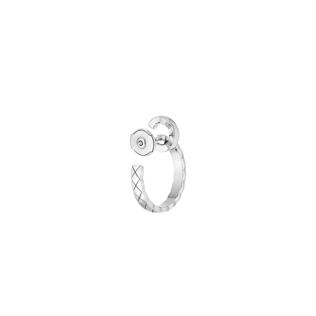 This small version of the CHANEL Coco Crush Ring features a quilted motif crafted from 18K white gold and adorned with diamonds.