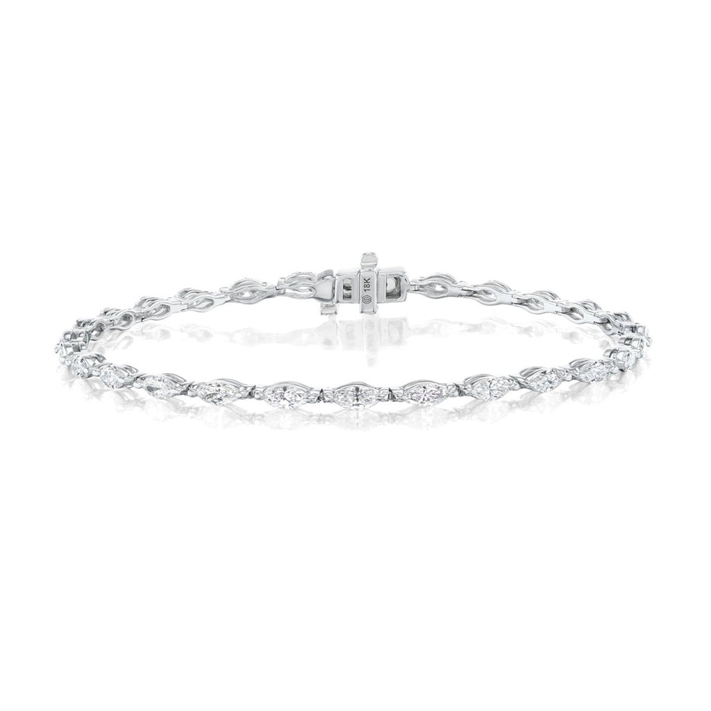 Diamond Line Bracelet in 18 karat white gold with marquise cut diamonds totaling 3.13 carats.