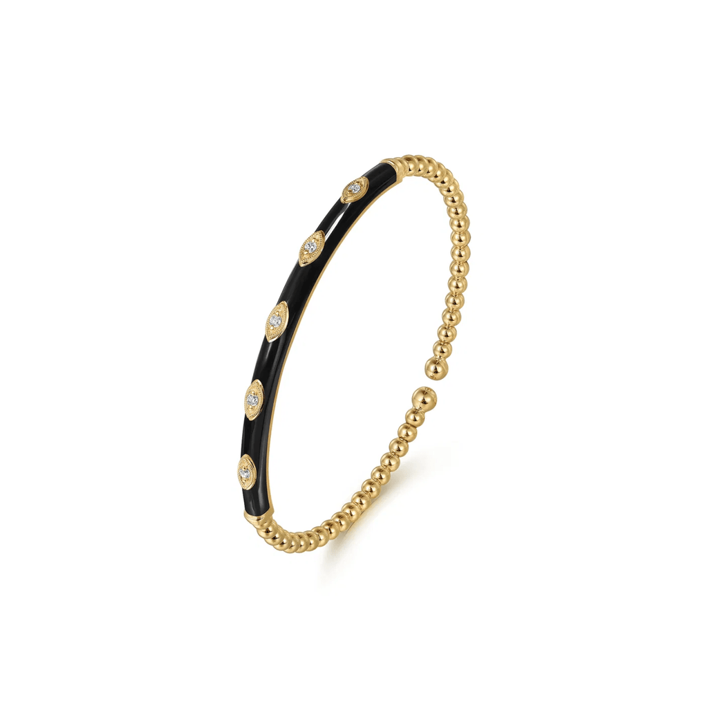 Gabriel & Co. Bujukan Beads and Diamond Split Bangle with Black Enamel. Diamonds totaling 0.1 carat weight.