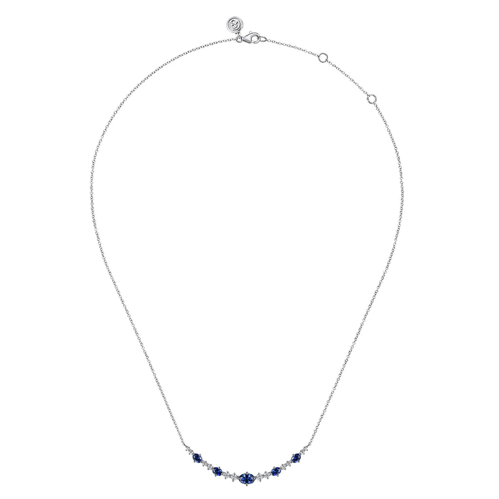 Gabriel & Co. Diamond and Blue Sapphire Necklace in 14 karat white gold with sapphire and diamonds with a total weight of 0.31 carats.