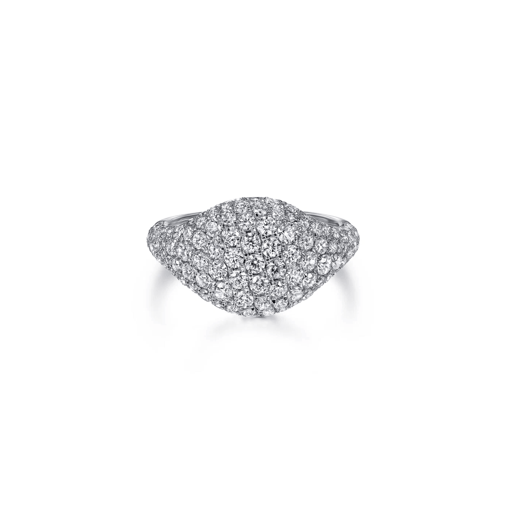 Gabriel & Co. presents a 14K white gold signet ring adorned with diamond pavé, featuring a total diamond weight of 1.5 carat weight. This expertly crafted piece combines classic design with brilliant sparkle.