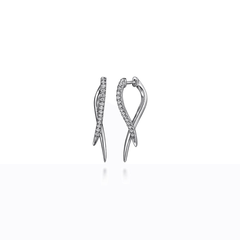 14 karat white gold Gabriel & Co. Diamond Huggies with Spike Drops
