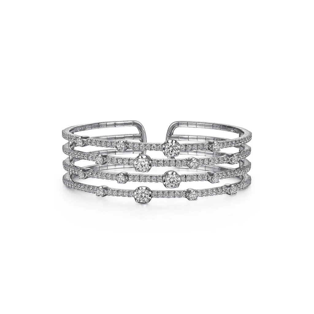 Made with 18 karat white gold four row diamond bangle. Diamonds totaling 4.45 carats.
