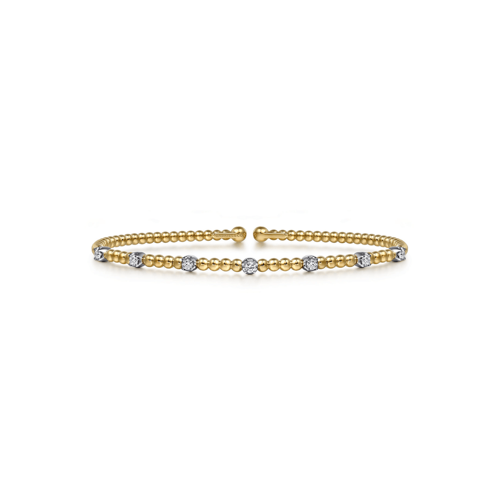 Gabriel & Co. Bujukan Bead Cuff Bracelet with Diamond Stations in 14 karat yellow gold.