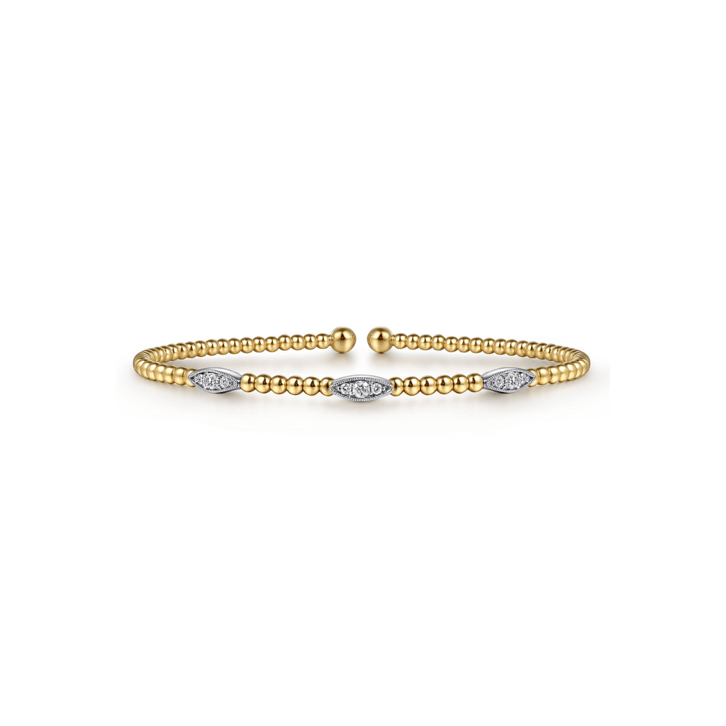 Gabriel & Co. Bujukan Bead Cuff Bracelet with Diamond Stations in 14 karat yellow gold.