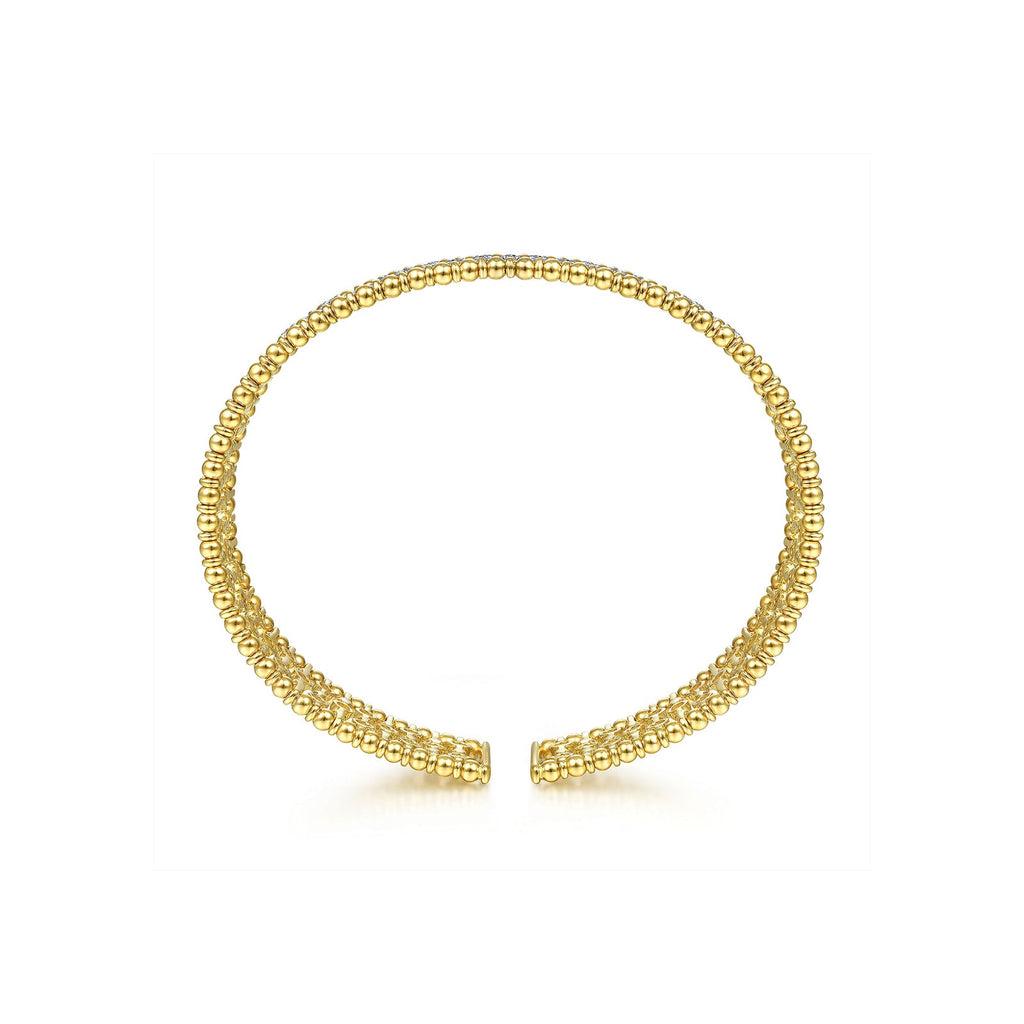 14 karat yellow gold Bujukan Bead Cuff Bracelet with Inner Diamond Channel
