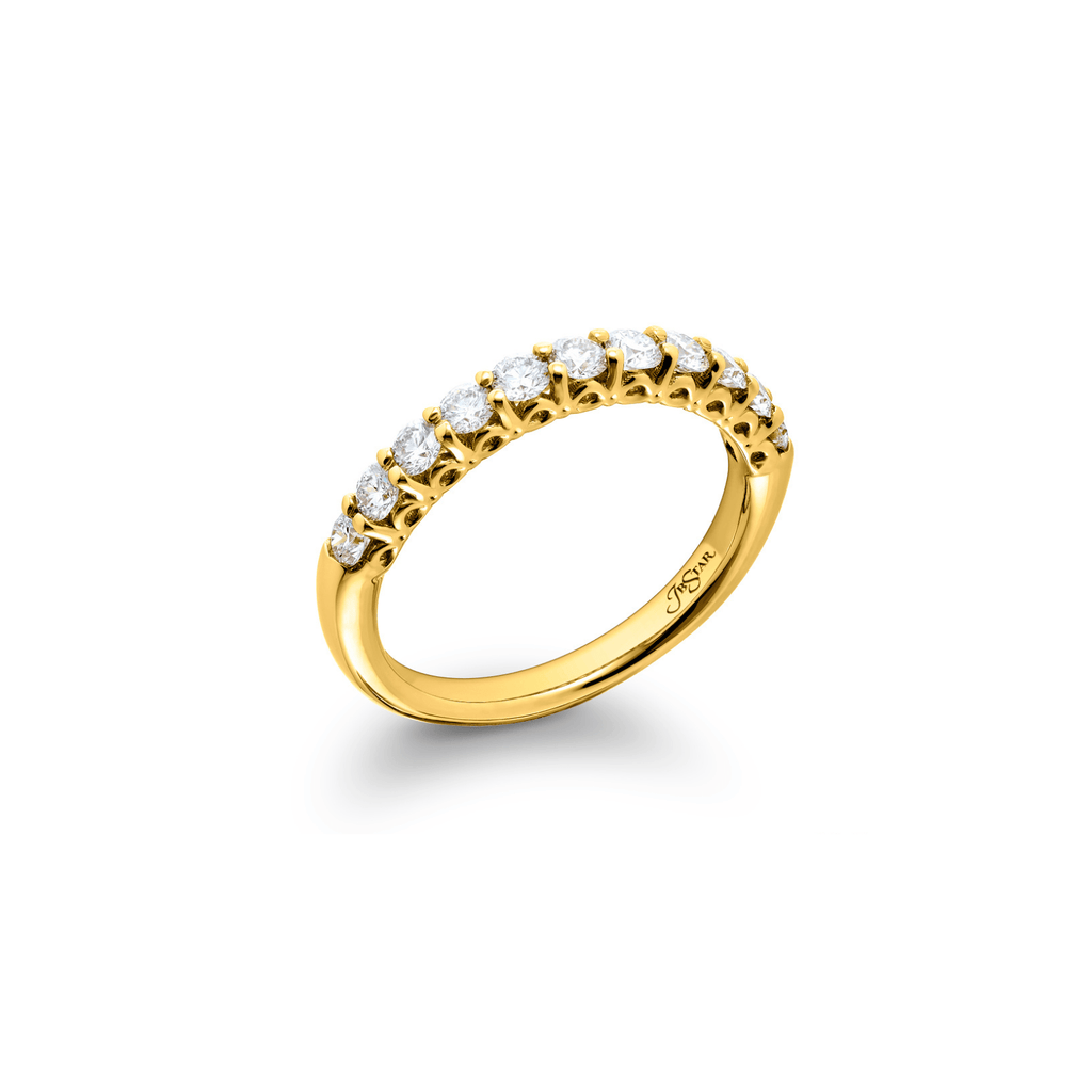 Made with 18 karat yellow gold diamond ring. Diamonds, totaling 0.68 carats.